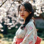 Cette saison, les imprimés floraux dominent les tendances avec leurs motifs délicats qui évoquent la douceur du printemps. Les roses pastel, les pivoines colorées et les fleurs sauvages transforment chaque kimono en véritable œuvre d’art portable.